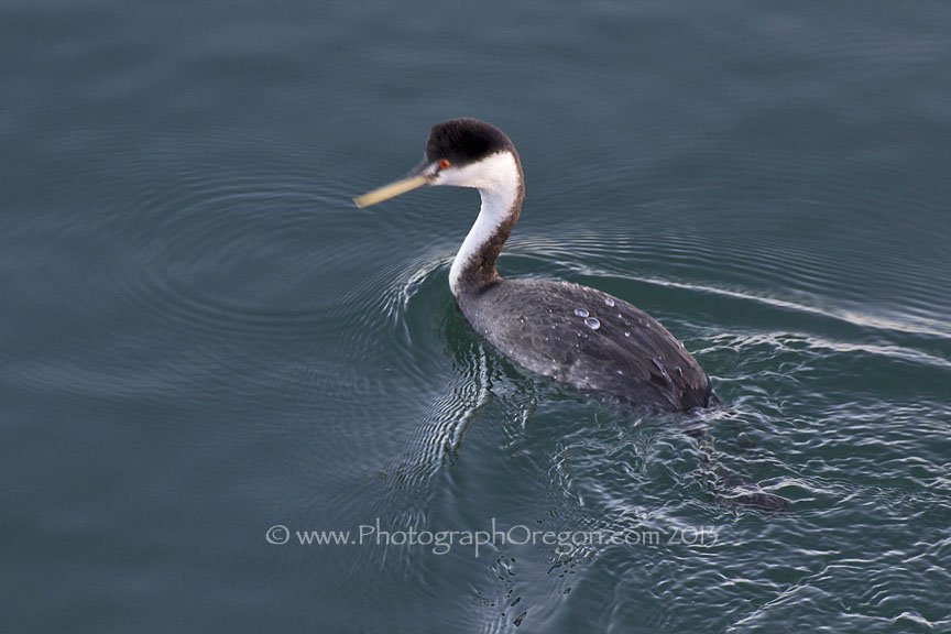 There is also a lot of other great Oregon coast animals out at the docks. This Western Grebe jumped into the water right next to me with a fish in it's beak.....