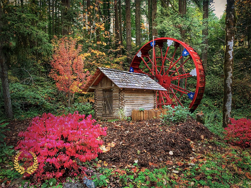 For many years every time I drove across the pass from Central Oregon to the coast, I saw this red waterwheel. Every time I said “I need to stop sometime and photograph it.”