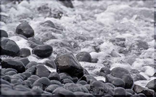 The beach below Yaquina Head is a black rock beach. The rocks are pretty good size (baseball and smaller). When the tide moves in and out the rocks rattle and make this great sound. I missed the tide low enough to see the starfish, but I did get to hear the rocks rattle and it was fantastic!